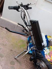 PUOI RENDERE LA TUA CARROZZINA ELETTRICA - AGANCIANDO IL DISPOSITIVO DAVANTI E "TROTTER" VIA - BATTERIA LITIO VOLT 36 AMPER 8 - MOTORE WATT 300 - AUTONOMIA KM 20,00 - DUE FRENI A DISCO - RUOTE DA 12 " - CERCHIO ALLUMINIO - TRASPORTO AUTO - PER INF CHIAMARE