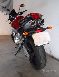 Vendo moto YAMAHA FZ6, anno maggio 2004, 600 cc, 98 cv 72 kW, 4 tempi, avviamento elettrico, KM 50142, Uniproprietario, Bollo pagato (maggio 2025), batteria nuova (acquistata e montata 20/3/2025), revisionata (prossima maggio 2026), gomme più che OK, accessoriata con pezzi originali Yamaha (cupolino, copri-sellino removibile, Bulloni paramotore, antifurto originale Yamaha + antifurto con sirena e doppio telecomando) in più vi verrà dato anche il cavalletto di supporto, sempre tagliandata in officina ufficiale Yamaha con ricevute dimostrabili (ultimo tagliando effettuato il 29/3/2024 a 47.368 km), tenuta sempre molto bene, vendo a 2.300,00€.