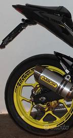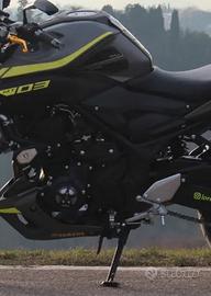 LA MIGLIOR MOTO PER PATENTE A2 Yamaha MT03 Piccola, agile e super divertente con i sui 321cc dimostra tutto il suo potenziale e la sua appetibilità per chi vuole approcciarsi ad una moto. Appena tagliandata. Sempre tenuta in garage e usata oer qualche rilassante giretto nei mesi estivi. Sono stati sostituiti i seguenti pezzi: scarico completo e omologato arrow, manopole rizoma, dischi freni sia posteriore che anteriore,griglia radiatore, tamponi da entrambi i lati, porta targa, cupolino anteriore para motore da entrambi i lati,leve freno e frizione, paratango posteriore, catena di trasmissione oro, nottolini per cavaletto posteriore Non svendo ma il prezzo è leggermente trattabile dopo presa visione È possibile provarla. Contatti solo se veramente interessati non perditempo.