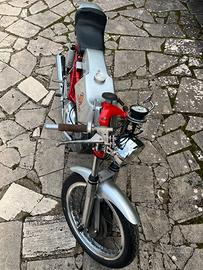 MOTOBI 125 SPORT SPECIAL (1970) Telaio n. 439396; immatricolazione italiana con targa originale "Roma 3119xx". Versione da competizione costruita dal mitico preparatore romano Augusto Imperiali (le cui leggendarie Benelli/Motobi monocilindrice hanno vinto innumerevoli Campionati italiani negli anni '60). La moto è perfettamente funzionante col suo motore "SS" elaborato e allegerito. Questo esemplare è stato realizzato utilizzando solo i migliori componenti speciali dell'epoca, come: - telaio rinforzato tipo "Zanzani" - cerchi in alluminio - forcella Marzocchi - freno anteriore Grimeca - contagiri meccanico Veglia - manubri e pedane arretrate Menani - kit serbatoio/sella in fibra di vetro Menani La moto è molto veloce ed affidabile: un vero piacere cavalcarla, ascoltarla e ammirarla! Per chi è interessato , su richiesta video della moto in funzione