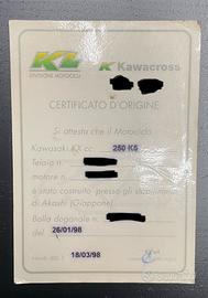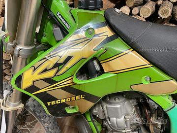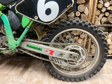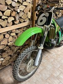 Motocross Kawasaki kx 250 2t originale in ogni sua parte, verificabile sui vari seriali dei componenti. telaio e codice motore corrispondenti a Libretto. Usata da amatore qualche volta in pista con un kit di plastiche Acerbis per preservare le sue originali. (Che verrano regalate insieme alla moto). Presenta qualche segno di usura derivanti dal tempo ma volutamente non restaurata per verificarne lo stato reale del mezzo. Vendo poiché da tempo ho smesso di usarla. Chiedete solo se interessati a concludere l'acquisto evitando di perdere tempo entrambi. Motore con 50 ore circa nessuna perdita da forcelle e mono, perfettamente funzionante.