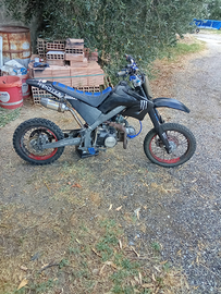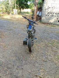 Vendo a malincuore pit bike 125 viper motore ducar. La moto ha 4 marce e monta un carburatore molkt 26 mm a valvola cilindrica, una centralina CDI racing blu,pedaline blu, mono ammortizzatore posteriore a gas regolabile, gas rapido,cordoncino azzurro 10mm,paracolpi renthal,filtro dell' aria UNI 47mm,statore nuovo,paracatena acerbis blu, tabella porta numero nera,manopole protaper blu, parasteli con sticker Monster,copri forcelle protaper blu,scarico diretto 28 mm con terminale di apertura 38mm, filtro benzina blu, cavo candela ngk a rapida reazione,coprisella blu con strisce nere,leve frizione e freno anteriore blu in ergal,leva del cambio PPR blu e vari sticker .