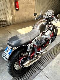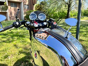 In vendita splendida Moto Guzzi V7 Racer 2011, serie limitata n° 612/1000: una moto che rappresenta in modo autentico il DNA sportivo e l’eleganza senza tempo della tradizione italiana. Chilometraggio: 39.151 km. Sempre regolarmente tagliandata, con frizione rifatta recentemente. Questo esemplare si distingue per il suo carattere unico: motore bicilindrico a V trasversale da 744 cc, raffreddato ad aria, capace di offrire una risposta pronta e corposa ai bassi regimi e un allungo fluido, accompagnato da una sonorità inconfondibile e coinvolgente. Il telaio bicolore in acciaio, abbinato a sospensioni a gas, assicura una guida precisa, stabile e appagante, sia nel misto che nei percorsi più rilassati. La moto è stata oggetto di personalizzazioni mirate, eseguite con gusto e grande attenzione ai dettagli: •Marmitte G.P.R. •Codino in alluminio a specchio per configurazione monoposto (inclusa anche sella biposto) •Specchietti cromati in acciaio su semimanubri •Cupolino in acciaio inox L.F.S. •Faro LED •Pneumatici all’85% Gli interventi valorizzano ulteriormente l’estetica e il piacere di guida, senza snaturarne l’identità originale, mantenendo un perfetto equilibrio tra stile café racer e funzionalità. Per gli amanti dell’originalità e del collezionismo, insieme alla moto vengono forniti anche alcuni componenti originali (marmitte, frecce, specchietti e codino portatarga), consentendo in qualsiasi momento il ripristino della configurazione di serie. Condizioni eccellenti, sempre mantenuta con cura maniacale. Una moto per veri intenditori, ideale sia per chi cerca un mezzo esclusivo da vivere su strada, sia per chi desidera un pezzo da collezione destinato a mantenere il proprio valore nel tempo.