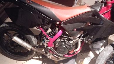 Vendo motore Beta RR 50 preparato, con carburatore 30 Malossi, marmitta Leovinci con scarico Ya sun, cilindro 100, impianto elettrico nuovo, tagliante fatto da poco, da visionare un po' il cambio essendo preparato, ma funzionante. Nella vendita sono compresi anche le ruote da sterrato e marmitta originale. Già monta ruote su strada. Prezzo trattabile.