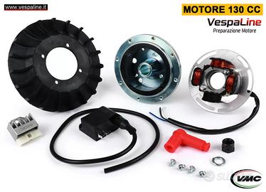 Configurazione: GRUPPO TERMICO: Polini 130 TESTAcon compressione ricalcolata SQUISH: 1,12mm CAMBIO: 4m PISTONE: Bi-fascia lavorato per incrementare i flussi ALBERO: corsa 51mm ALBERO: Lavorato per emissione lamellare CONO: 20mm ASPIRAZIONE: Lamellare CARBURATORE: DellOrto PHBL 24Dx RAPPORTI: 27-69 D.D. FRIZIONE: 4 dischi con molla rinforzata Malossi CROCIERA: Rinforzata DRT MATERIALE DA RIPORTO con alluminio da rinforzo ai travasi laterali MATERIALE DA RIPORTO con alluminio da rinforzo aspirazione RACCORDATURA ai travasi laterali per alloggiare un gruppo termico CUSCINETTI: SKF banco, frizione, cambio, alberino SKF alta velocità ACCENSIONE: VMG Anticipo variabile 1.5 Kg VOLANO: VMG 1,5 Kg VENTOLA in plastica SCARICO non incluso WhatsApp: 39 3793685549 per soli messaggi