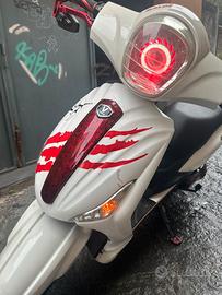 Vendo motorino elettrico vitale 250watt monta un faro che fa luce rossa e bianca leve freno rosse pellicola in carbonio rosso in alcune plastiche manopole rosse e nere specchietti bassi (in foto ce n'è uno montato ma do anche il secondo) vari sticker rossi/neri copri cavalletto anti-scivolo rosso doppia chiave e do anche il bauletto e ho anche un contatore di batteria, calcola la percentuale della batteria e i volt (non ancora montato) il motorino ha la plastica bassa destra un po rotta ma neanche si nota batteria da cambiare vendo per passaggio a 125