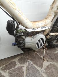 vendo causa inutilizzo motorino preparato per monferraglia e mai utilizzato, ancora da rodare. il motore e' stato rifatto completamente, cuscinetti, guarnizioni, frizione, olio dei rapporti. monta gruppo termico nuovo Polini 70, carburatore nuovo dell' orto 19 con. filtro a cono nuovo Malossi. dispongono anche di marmitta nuova Polini country da montare. gomme tassellate nuove e manopole nuove. il blocco e' un Minarelli V1 con kick starter. sprovvisto di libretto. valuto offerte sensate, posso anche sembrare e spedire senza telaio.