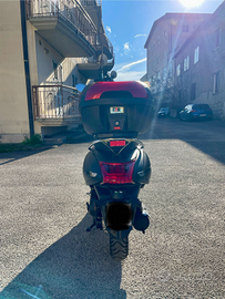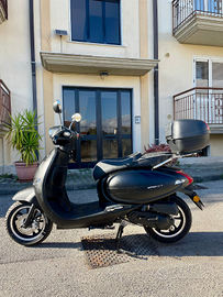 Vendo scooter 50 omologato per 2 persone, super accessoriato,tenuto in ottime condizioni e usato pochissimo.Lo scooter è alimentato a benzina con bassissimo consumo,e dotato di luci a led abbaianti e anabbaglianti,e dotato una presa per cavo USB e inoltre è dotato di bauletto.