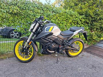 MOTORE 1 cilindro, 4 tempi, raffreddato a liquido CILINDRATA 125cc POTENZA 9.5 kW -AVVIAMENTO elettrico- CAMBIO manuale a 5 marce -FRENO ANTERIORE a disco idraulico: 265 mm-FRENO POSTERIORE a disco idraulico (CBS): 240 mm- SOSPENSIONE ANTERIORE Forcella telescopica SOSPENSIONE POSTERIORE Braccio oscillante con puntone di sospensione CAPACIT MASSIMA DEL SERBATOIO 13.0 L