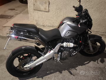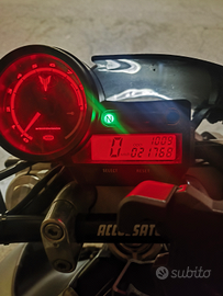 Verniciata colore grigio opaco, scarico dominator, portatarga artigianale, sella rivestita e imbottita, manubrio accossato, frecce led dinamiche con relativo relè, pneumatici Michelin Power GP2 al 70%, kit trasmissione did