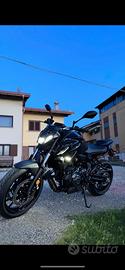 moto tenuta maniacalmente, depotenziata per A2 , ancora in garanzia, pezzi tutti originali compreso kit plus con porta targa, frecce plus, protezioni gomma serbatoio e cupolino nero. ingrasso catena fatta ogni 300/400 km. gomme in buone condizioni primo tagliando fatto regolarmente in officina yamaha.