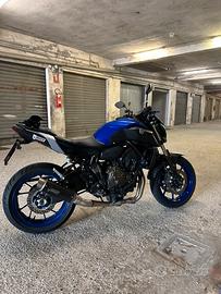 EVITARE AFFARISTI O PERDITEMPO A Ivrea, vendo per passaggio a cilindrata superiore Yamaha MT-07 ABS (anno 2020) depo A2 di colore blu e nero corredata di: - cupolino nero MT-07; - luci di posizione/faro a led in carbonio; - leve freno/frizione sportive blu metallizzato con la scritta MT-07; - scarico MIV (valore 750€); - revisione effettuata giugno 2024 (scadenza giugno 2026) - gomme diablo (70%); - tagliando effettuato mese luglio 2024 dei 10000 km (fatto in anticipo); - condizioni carrozzeria ottimo stato (tenuta maniacalmente sempre in garage) Prezzo 6900 escluso passaggio