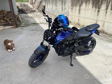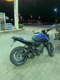 mt 07 2024 depotenziata guidabile con patente a2 monta scarico completo roads italia decatalizzato gomme al 70% vari accesori estetici fra cui faro led blu posteriore disponibili tutti i pezzi origiali