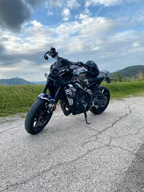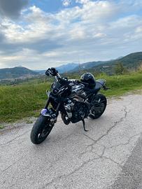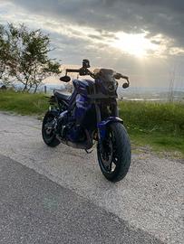 Vendo Mt-09 anno 2022 Pellicola wrap glitterata metà viola e nera e metà bianca e nera, colore originale della moto total black Portatarga sportivo, cupolino sportivo, specchietti con vetro antiriflesso, tagliando fatto e gomme cambiate nemmeno 2000km fa, Paramotore barracuda, protezioni al carter Cambio con quick shift in entrambi i versi La moto non ha nemmeno 15 mila km come si evince dalle foto