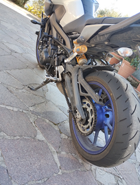 La moto monta il kit Sp con scarico akrapovic senigrafato Mt-09 come sopra i cerchi delle ruote.