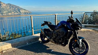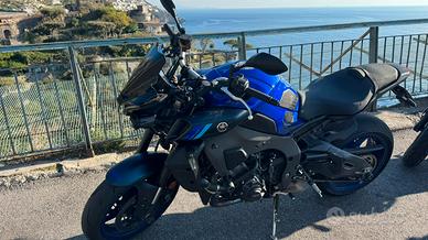 Yamaha MT-10 immatricolata nuova il 26/03/2025. Moto usata per lo più per uscite estive e due brevi viaggi a luglio e agosto. La moto è ferma da settembre sui cavalletti con batteria in efficienza tramite mantenitore di carica. Moto con 14000 km. Perfetta in tutto: nessuna manutenzione da fare. Accessoriata con kit sport originale Yamaha; comprende scarico Akrapovic, para leve con frecce led integrate (da montare), porta targa regolabile sportivo, cover serbatoio sportive (centrale e laterali), tamponi para telaio, protezioni radiatori originali Yamaha MT. Attacco rapido per mantenitore di carica, in più regalo anche il mantenitore. Gomme Michelin Power GP2 al 90%. Già fatti due tagliandi in concessionaria Yamaha (1000 e 10000 chilometri). Garanzia Yamaha full per i prossimi 7 anni. Assolutamente nessun lavoro da eseguire! Vendo o eventualmente scambio con Aprilia Tuono V4 Factory.