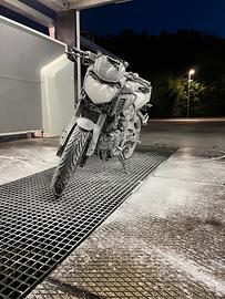 Vendo Yamaha MT-125 ABS immatricolata nel 2016, con 9.523 km reali, tenuta sempre con cura e manutenzione regolare eseguita, revisione fatta a Luglio 2025 valida per 2 anni. La moto è meccanicamente perfetta e tagliandata, pronta per l'utilizzo senza alcun intervento necessario. Esteticamente presenta solo due piccoli segni dovuti al precedente proprietario: uno sul codino posteriore e uno sul terminale di scarico, entrambi puramente estetici, per il resto è perfetta e mai incidentata. Allestimento e accessori: o Pacchetto Sportivo originale Yamaha (cupolino + portatarga corto) o Specchietti aftermarket sotto manubrio o Gomme pirelli 70% e freni in ottime condizioni o Catena lubrificata e regolata periodicamente o frecce LED dinamiche con stop o manopole circuit in tinta con i colori della moto o filtro aria sportivo k&n o ABS o selle appena fatte rifoderare in ecopelle grip apposita Moto agile, affidabile e dai consumi molto contenuti grazie al motore 125 cc 4 tempi, perfetta sia per neofiti che per chi cerca una naked compatta ma dal carattere sportivo. Vendo a malincuore causa inutilizzo e trasloco. Per qualsiasi informazione non esitare a contattarmi.