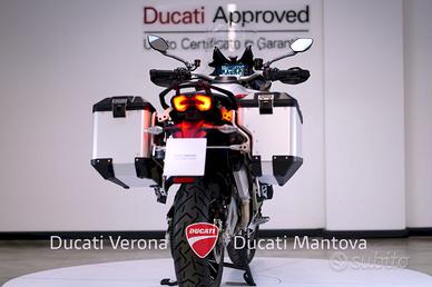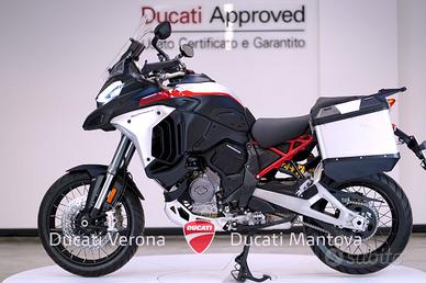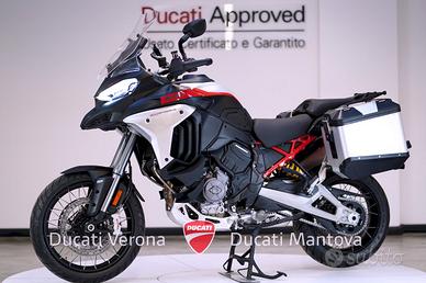 Red Bike è Ducati Exclusive Dealer per le province di Verona e Mantova dal 1999. Da noi troverai solo moto certificate e controllate dettagliatamente, appartenenti al programma Ducati Approved.Qui proponiamo uno stupendo:Multistrada V4 Rally Travel & Radar solo 7.847 kmSolo un anno di vita, condizioni eccellenti e pochissimi km per questa Multistrada V4 Rally. E' la versione Adventure Travel & Radar, con meno di 8.000 km. Gomme nuove, manutenzione eseguita e come chicca anche l'IVA completamente esposta.Possibilità dia vere anche il kit enduro a prezzo agevolato.Ricapitolando:- solo 7.847 km- uniproprietario- pneumatici anteriore e posteriore nuovi- IVA ESPOSTA- manutenzione regolare e documentata- garanzia ufficiale della casa fino a luglio 2027- garanzia di conformità 12 mesi- possibilità di finanziamento a tasso agevolato- annual service appena eseguito- possibilità estensione garanzie ufficiale Ducati ApprovedREGOLARMENTE TAGLIANDATAIl prezzo pubblicizzato è valido SOLO senza ritiro usato, ed è da intendersi già al netto dello sconto riservato, pari a 800 euro per questo veicolo. Il passaggio di proprietà è escluso.Siamo specializzati e strutturati per effettuare anche il servizio di finanziamento e permuta moto con moto oppure orologi di nostro interesse con moto. Inoltre acquistiamo moto con pagamento immediato, purchè di nostro interesse.IL PREZZO DI LISTINO, VALIDO CON RITIRO USATO O PER INIZIO TRATTATIVA, E' DI 23.790 EURO.Ducati Verona - Bosetti MotoInfo e prenotazioni: ---N.B.: La dotazione tecnica e gli accessori indicati nella presente scheda potrebbero non coincidere con l'effettivo equipaggiamento del veicolo, a causa della non uniformità dei dati pubblicati dai diversi portali. Ci scusiamo per l'inconveniente e vi invitiamo a verificare le caratteristiche dello specifico veicolo. Ducati Verona declina ogni responsabilità per eventuali involontarie incongruenze, che non rappresentano in alcun modo un impeg