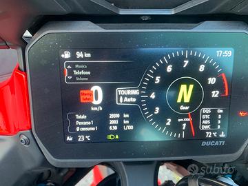 Vendo multistrada v4s travel + radar. Super accessoriata: Cerchi raggi. Parabrezza e deflettori fume' + originali mai usati. Paramani maggiorati + originali. Barre paramotore. Faretti ausiliari. Manopole riscaldate. Selle ant+post riscaldate. Sella pilota originale Ducati comfort con ricamo Multistrada + sella originale. Paramotore in alluminio. Cavalletto centrale. Supporto bauletto + top case alluminio. Telai + valigie laterali in alluminio originali + borse interne. Antifurto con immobilizer + 2 telecomandi. Tutti i tagliandi in officina ducati documentati. Ultimo tagliando 26.000 km fatto ad agosto 2025. Collaudo scadenza 2028. Pneumatici tourance next 2 semi nuovi fatti solo 4.000 km. Prezzo di partenza molto basso con poco margine di trattativa perché in condizioni di meccanica e carrozzeria perfette. Sempre tenuta in garage. Nessun lavoro da fare. Non scambio, vendo per passaggio a modello 2026.