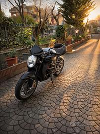 Vendesi splendida MV Agusta Brutale 1090 rr, versione con teste rosse di serie. In condizioni perfette, appena tagliandata in MV, batteria nuova, traction control modulabile e removibile, 3 mappe sport. Monobraccio posteriore, Freni a margherita completi Brembo Corsa, pinze Brembo, sella alcantara. Consegno completa di tamponi Mv agusta, mai incidentata, mai caduta, neanche un graffio, versione total black opaco originale. La moto è completamente originale, astenersi perditempo e sognatori, Moto impegnativa, una leggenda della strada ma da usare con la testa