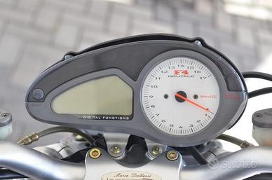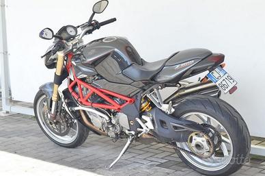 DEK:[10533560] MOTOCICLETTA DA COLLEZIONE EDIZIONE LIMITATA "GLADIO" - SOLO 300 ESEMPLARI OTTIME CONDIZIONI COMPLETAMENTE ORIGINALE SOLO 24000 KM.!! Motore: quattro cilindri in linea da circa 749 cc, raffreddamento a liquido, 4 valvole per cilindro, distribuzione DOHC. Potenza: circa 127 CV a 12.500 giri/min. Coppia: circa 77 Nm a 10.500 giri/min. Trasmissione: cambio meccanico a 6 marce, trasmissione finale a catena. Telaio e ciclistica: telaio a traliccio tubolare in acciaio CrMo e piastre in leghe leggere; forcella anteriore rovesciata Ø ~49-50 mm con steli regolabili, escursione circa 118-120 mm; sospensione posteriore monoammortizzatore (forcellone monobraccio) con regolazione del precarico e ammortizzazione, escursione circa 120 mm; cerchi 17''/17'': pneumatico anteriore 120/65-17, posteriore 190/50-17; freno anteriore doppio disco Ø 310 mm con pinze a 6 pistoncini, freno posteriore disco Ø 210-210 mm (o ~210-mm) con pinza 4 pistoncini. Altezza sella: circa 805 mm. Peso: circa 185 kg a secco. Serbatoio: capacità circa 19 litri. Stile: moto naked sportiva ad alte prestazioni, in versione "Gladio" edizione limitata (solo poche centinaia di esemplari) con finiture speciali, plaque numerata, dettagli estetici esclusivi; look aggressivo e raffinato. Carattere: pensata per chi cerca una moto molto performante e distintiva: motore potente, ciclistica sportiva, estetica di prestigio; ideale per chi vuole emozione e stile unico, meno indicata per uso urbano quotidiano rilassato o turismo tranquillo senza compromessi.La motocicletta viene consegnata con TAGLIANDO e REVISIONE in ordine, GARANZIA DI 12 MESI con DICHIARAZIONE DI CONFORMITA' a norma di legge. BONTEMPI MOTO -SHOW ROOM con 200 OCCASIONI SELEZIONATE e GARANTITE- -ACQUISTIAMO MOTO E SCOOTER CON PAGAMENTO IMMEDIATO- I NOSTRI SERVIZI : - Garanzia di 12 mesi - Finanziamenti