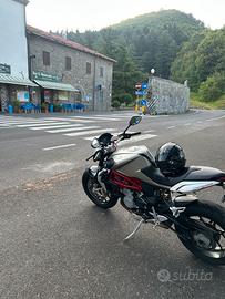 Vendo mv agusta brutale 800 2014, 3 cilindri, 125 cavalli, no abs, chilometri 26500, e' stata tagliandata adesso 11/02/2026 con olio, filtro olio, filtro aria, cambio pasticche freni, pulizia e tiraggio catena, sostituita guarnizione coperchio valvole. Rimontato portatarga e frecce originali in foto si vede il vecchio portatarga aftermarket. Monta parafango anteriore in carbonio (ho anche l originale) e protezione scarico in carbonio. Pneumatici al 80% diablo 2. Regalo mantenitore di carica. Bollo valido fino al 07/2026. Astenersi venditori e perditempo, non scambio.