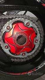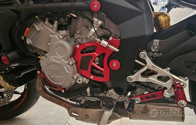 Pedaniere arretrate, manubrio, pignone, coprimozzi e minuteria in Ergal CNC Racing.