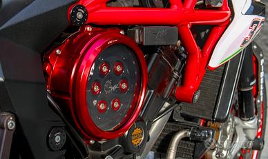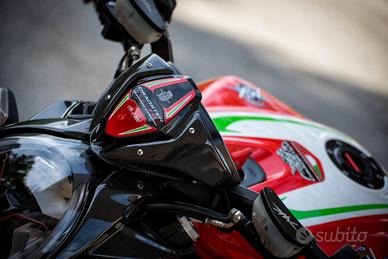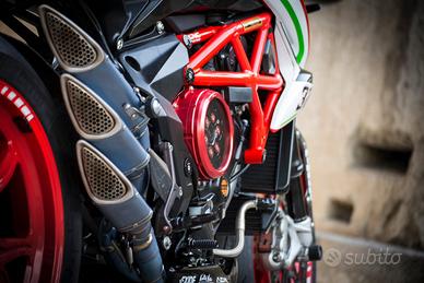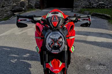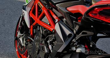 Vendo mv agusta dragster rc (reparto corse) edizione numerata solo 250 esemplari (n.170 di 250 versione limitata della dragster 800 rr) tenuta in condizioni maniacali, curata in ogni minimo dettaglio, livrea commemorativa dei 37 campionati mondiali di mv agusta. Fornisco a corredo cassa in legno reparto corse con il quadro della serie numerata, box in alluminio con manuali chiavi e usb e mantenitore di carica mv. Gomme diablo rosso 4 corsa montate a metà stagione ancora in ottime condizioni e tagliando appena effettuato.