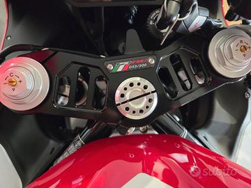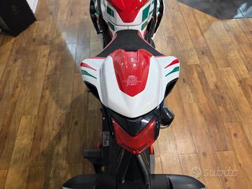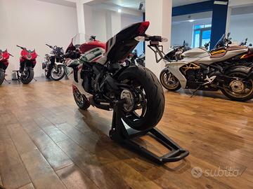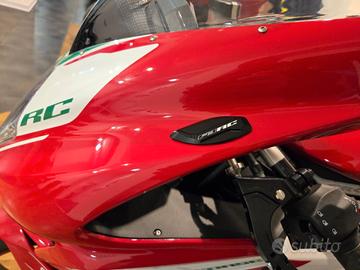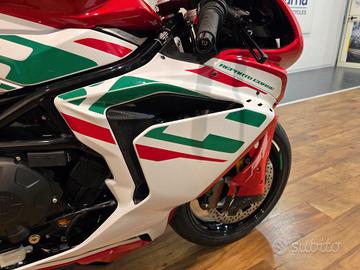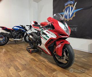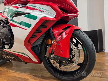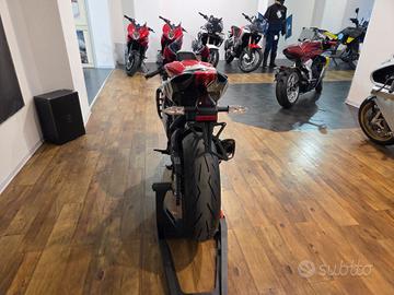 MV Agusta F3 RC Moto Km0 Possibilità di finanziamento e Consegna in tutta Italia Fatturabile con Iva Esposta Numero 033 di 300 Motore Tre cilindri, 4 tempi, 12 valvole Distribuzione Doppio albero a camme in testa, con tenditore meccanico e bicchierini DLC Cilindrata totale 798 cm3 Rapporto di compressione 13.3:1 Avviamento Elettrico Alesaggio per corsa 79 mm x 54,3 mm Potenza max. a giri/min (all'albero) 108 kW (147 CV) a 13.000 giri/min Potenza max. a giri/min (all'albero) ** 114 kW (155 CV) a 13.250 giri/min** Coppia massima giri/min 88 Nm (8,98 kgm) a 10.100 giri/min Raffreddamento A liquido e olio con radiatori separati Accensione - Iniezione - Elettronica Sistema integrato di accensione-iniezione MVICS 2.1 (Motor & Vehicle Integrated Control System) con sei iniettori. Centralina di controllo motore Eldor Nemo 2.1; corpo farfallato diametro 50 mm full ride by wire Mikuni; bobine pencil-coil dotate di tecnologia "ion-sensing", controllo della detonazione e misfire. Controllo di coppia con 4 mappe. Traction Control ad 8 livelli di intervento Sistema cambio elettronico MV EAS 3.0 (Electronically Assisted Shift Up & Down) Frizione Multidisco in bagno d'olio con dispositivo antisaltellamento meccanico Cambio velocità Estraibile a sei velocità con ingranaggi sempre in presa Rapporti primaria 22/41 Rapporto finale di trasmissione 17/43 Velocità max. * 240,0 km/h Accelerazione 0-100 km/h in 2.97 s** 0-200 km/h in 8.40 s** Tensione impianto 12 V Alternatore 350 W a 5.000 giri/min Batteria 12 V - 8,6 Ah Tipologia Telaio Tubolare a traliccio in acciaio ALS Materiale piastre fulcro forcellone Lega di alluminio Sospensione anteriore Forcella Marzocchi oleodinamica a steli rovesciati con trattamento TIN e sistema di regolazione esterno e separato del freno in estensione, in compressione e del precarico molla Ø Steli 43 mm Escursione ruota anteriore 125 mm Sospensione posteriore Progressiva, monoammortizzatore Sachs regolabile in estensione,
