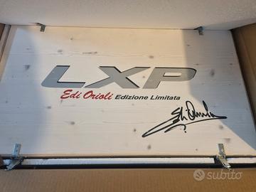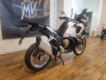 MV Agusta LXP Orioli In pronta consegna Possibilità di Finanziamento e Consegna in tutta Italia DOTAZIONE La ricca dotazione di serie della LXP Orioli e la sua anima da adventure di lusso sono completate dalle valigie laterali rigide in alluminio marchiate MV Agusta, dotate di sistema a sgancio rapido e push block, da 39L e 32L (lato scarico) di capienza.La LXP Orioli viene accompagnata da un kit a corredo che contiene lo scarico omologato in titanio, progettato e sviluppato in co-design tra MV Agusta e Termignoni, abbinato a fondello e paracalore in fibra di carbonio per una riduzione di peso totale di oltre 4 Kg. A completare il kit a corredo il cliente finale troverà in dotazione nella cassa dedicata il telo coprimoto e il certificato di autenticità. CONCEPT Non esiste lusso più grande e raro della totale libertà di viaggiare, di esplorare e di conoscere senza porsi limiti. MV Agusta celebra questo concetto con la prima moto all-terrain di lusso al mondo: la LXP Orioli. Prodotta in soli 500 esemplari, questo nuovo modello è un tributo a una leggenda italiana del motociclismo, Edi Orioli, che negli anni Novanta, indossando gli iconici colori Lucky Explorer - verde, rosso e bianco - diventò un simbolo del motociclismo d'avventura, dominando il panorama rallistico mondiale. Ogni esemplare prodotto, oltre ad essere numerato, è firmato di persona da Edi Orioli, diventando di fatto un pezzo unico da guidare e da collezionare. STILE La LXP Orioli si contraddistingue per l'elegante colore Bianco Perlato che domina le carene ed il parafango anteriore, mentre alcuni dettagli riportano i colori dello storico sponsor con cui Edi Orioli dominò il panorama rallistico negli anni 90. La parte centrale della moto invece è Nero Carbon-Metallic, così come la maggior parte della sella, sulla quale il bianco delle carene viene ripreso ai lati. Motore 931cm3, 3 cilindri, 4 tempi, 12 valvole Distribuzione Doppio albero a camme in testa, con tenditore meccanico+ bicchierini DL