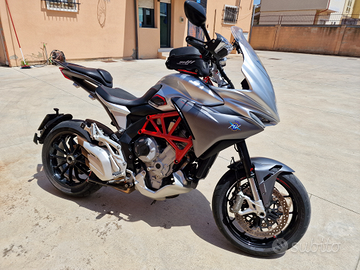 Moto in perfette condizioni appena tagliandata con sostituzione candele. Vendo con valigie originali integrate, porta cellulare, n. 2 prese USB, n. 2 Prese accendi sigari una per conducente ed una per passeggero, manopole riscaldate, vivavoce bluetooth, sospensioni regolabili, quick shift up/down, cruise control, 4 mappe di potenza di cui una personalizzabile, cavalletto centrale, ABS disattivabile, modulo imu 6 assi regolabile su 8 posizioni di sensibilità, pneumatici nuovi, attacco per mantenitore di carica integrato sottosella, 2° chiave più chiavetta usb MV Agusta con all'interno manuale d'uso e manuale officina. Richiami tutti eseguiti in MV Official di cui consegno rapporto. Km 24.000. Givi tanklock non incluso.