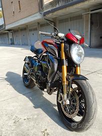 Vendo bellissima MV augusta brutale versione dragster, tenuta maniacalmente da amatore. La moto é stata sempre utilizzata per giri nel weekend. monta i seguenti componenti: Forcella e mono Holins ttx top di gamma Scarico completo Fratelli Freschi Ammortizzatore di sterzo Carenature in carbonio kit pedane arretrate regolabili Effettuato da poco mega tagliando da officina MV con nuova distribuzione moto esente da problemi, nessun lavoro necessario. In aggiunta sella monoposto e biposto.
