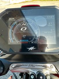 Vendo splendida MV Agusta Dragster RC, serie limitata numerata 237/300, immatricolata a settembre 2025 e con soli 27 km all’attivo. La moto è praticamente nuova, mai sfruttata, conservata in modo maniacale e sempre custodita al coperto. Caratteristiche principali: •Serie limitata ufficiale MV Agusta •Numero identificativo: 237/300 •Cambio elettronico (quickshifter) •Componentistica racing e finiture di altissimo livello •Design esclusivo e aggressivo Accessori inclusi: Insieme alla moto vengono ceduti diversi accessori originali e performanti, ideali per migliorare ulteriormente estetica e prestazioni (dettagli su richiesta). Condizioni: Moto pari al nuovo, senza segni, graffi o difetti. Perfetta per collezionisti o per chi cerca un mezzo esclusivo e praticamente inutilizzato. No perditempo, solo realmente interessati. Per ulteriori informazioni o foto, contattare in privato.