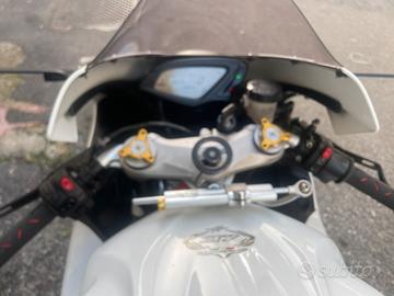 Mv augusta F3 675 tenuta da amatore. Consegno con parti originali e attualmente monta scarico diretto Hp Corse, centralina aggiuntiva , filtro aria sportivo . Il tagliando viene effettuato ogni 3000 km,freni messi nuovi avanti e' dietro, è stato effettuato ingrassamento del mozzo, è stato rifatto impianto elettrico,e altri vari lavori.La moto è tenuta in modo maniacale.Non accetto permute o scambi. No perditempo. Prezzo trattabile.