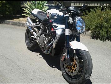Vendo causa inutilizzo MV Brutale 1078 Rr del 2009 con 8000 mila Km reali, venduta con tagliando completo eseguito perché è stata ferma sempre in box, la moto è nuova non ha neanche un graffio, moto con centralina originale MV corse e scarichi completi in titanio, "solo il gruppo collettori scarichi in titanio e centralina vale più di 2000 mila euro", la moto è un proiettile terra aria perché col kit MV corse ha più di 160 CV, *consigliata a persone esperte* moto di interesse storico con valore crescente, no sognatori, no affaristi prezzo non trattabile, la vendo solo per inutilizzo in quanto posseggo altre moto. Disponibili le parti originali, scarichi, frecce, codone.