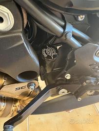 Ho aggiunto a parte.. parafango anteriore in carbonio mv, tappo olio racing mv, tappo bezina racing mv, copri catena superiore e inferiore in carbonio e ho anche il copri scraico della originale in carbonio.