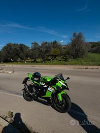 Vendo Ninja zx6r per cambio tipologia Questa è una delle poche zx6r ad aver passato correttamente i richiami, in quasi tutte è stato sostituito il motore o aperto, in questa no come attestano i fogli rilasciati dal concessionario. La moto monta : • Parafango posteriore in carbonio (110€) • Parafango anteriore in carbonio (170€) • Scarico Akra Racing line non omologato preso usato (300€) • Presa d’aria RAM Air in carbonio (50€) • Para lati serbatoio in carbonio (30€) • Para serbatoio in carbonio (80€) • Cupolino doppia bolla fume (40€) • tappi ruote verdi (5€) • monoposto (35€) • Alette aereodinamiche che ho momentaneamente smontato(120€) • Fine cavalletto allargato (15€)