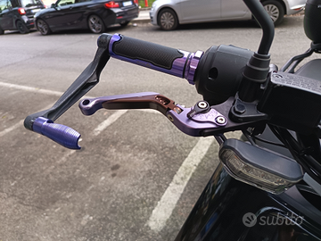 Monta manopole blu con grip aumentato, paraleve carbonio-blu e leve dei freni regolabili e con sistema anti rottura, tutti pezzi originali comprati dallo store NIU.