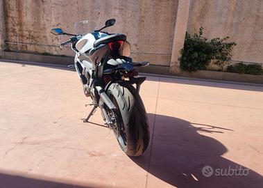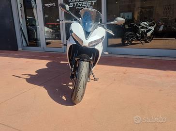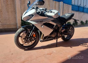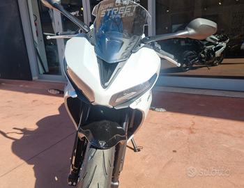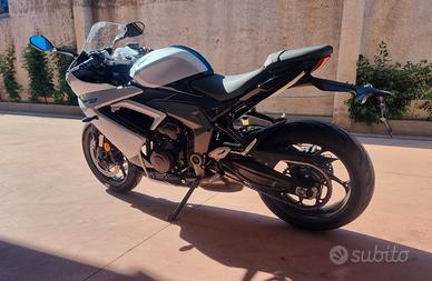 NUOVA DAYTONA 660 -Colore SNOWDONIA WHITE / SAPPHIRE BLACK -Nuova in pronta consegna -Consegna in tutta Italia -Garanzia Ufficiale Casa Madre valida 2 estendile a 3 o 4 anni -Finanziamenti a tassi agevolati MOTORE E TRASMISSIONE Motore Raffreddato a liquido, 12 valvole, doppio albero a camme in testa, 3 cilindri in linea Cilindrata 660 cc Alesaggio 74.04 mm Corsa 51.1 mm Rapporto di compressione 12.05 Potenza Massima (CE) 95 CV (70 kW) (95PS) a11,250 giri Coppia Massima 69 Nm @ 8,250 giri Sistema di iniezione Iniezione elettronica sequenziale multipoint con SAI con controllo elettronico dell'acceleratore Scarico Collettore di scarico in acciaio inossidabile 3 in 1 con silenziatore basso in acciaio inossidabile Trasmissione finale Catena X-ring Frizione Multidisco in bagno d'olio, antisaltellamento, assistita Cambio 6 rapporti TELAIO Telaio Telaio perimetrale in acciaio tubolare Forcellone Bibraccio, in acciaio Ruota Anteriore In lega di alluminio, 17 x 3,5" Ruota Posteriore In lega di alluminio, 17 x 5,5" Pneumatico Anteriore 120/70 ZR 17 Pneumatico Posteriore 180/55 ZR 17 Sospensione Anteriore Forcella a steli rovesciati Showa Big Piston con funzioni idrauliche separate (SF-BPF) da 41 mm, corsa ruota 110 mm Sospensione Posteriore Monoammortizzatore Showa con regolazione del precarico, corsa ruota 130 mm Freno Anteriore Doppio disco flottante da 310 mm, pinze radiali a 4 pistoncini, ABS Freno Posteriore Disco fisso da 220 mm, pinza scorrevole monopistoncino, ABS Strumentazione e Funzioni Strumentazione multifunzione con display TFT a colori DIMENSIONI E PESO Larghezza Manubrio 736 mm Altezza Senza Specchietti 1145.2 mm Altezza Sella 810 mm Interasse 1425.6 mm Angolo di Inclinazione 23.8 º Avancorsa 82.3 mm Capacità Serbatoio 14 L Peso in ordine di marcia 201 kg