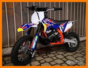 >>ULTIME MOTOCROSS DISPONIBILI>> POSSIBILITA' DI PAGAMENTO A RATE CONTATTACI AL anche tramite whatsapp CARATTERISTICHE TECNICHE Motore MORINI 50 cc REPLICA KTM 2t raffreddato ad aria Frizione a 3 masse REGOLABILE Potenza 9 cv/9500rpm Coppia 7 Nm/11000rpm Carburante: Miscela 2% Capacità serbatoio 1,3 litri Presa diretta - automatico Trasmissione a catena Avviamento kick starter a pedale Telaio tubolare in acciaio Plastiche KTM SX Freno anteriore idraulico a disco Freno posteriore idraulico a disco a pedale Forcelle idrauliche a steli rovesciati Cerchi 12/10 Pneumatici 60/100-12 ant. - 80/100-10 post. Altezza sella 61 cm ruote 14/12 altezza sella 71cm Colorazioni disponibili: grafiche adesivi personalizzabili con nome e numero disponibili nelle colorazioni red bull KTM OPPURE MONSTER ENERGY altri colori (kit optional) disponiamo anche di MINI CROSS PIT BIKE QUAD MINIQUAD MOTO ENDURO PITBIKE CONTATTACI AL anche tramite whatsapp Attenzione "moto utilizzabile solo in luoghi privati e/o impianti sportivi e pista . NON è un giocattolo. si specifica che:la moto è un simil ktm (replica), trattasi di non originale ne marchiato ,ma solo simile nell'estetica e in alcune caratteristiche