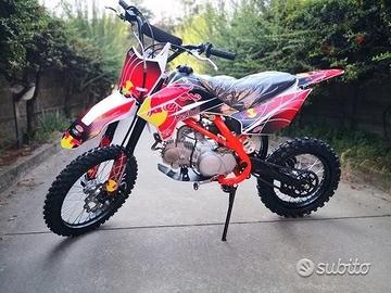 trattasi di veicolo per uso privato, non adatto per circolare su strada, il veicolo è un simil ktm, replica dunque non è un prodotto originale / brevettato. prezzo riferito alla versione minicross 125. non è un giocattolo. è altamente consigliato l'uso delle protezioni durante l'utilizzo