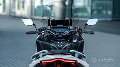Il potente motore EURO 5+ da 560 cc e la raffinata trasmissione automatica rendono questo Scooter Sportivo Yamaha più veloce e fluido. I telaio in alluminio di tipo motociclistico e le sospensioni regolabili garantiscono una guida di precisione. Per il massimo comfort, il TMAX Tech MAX è dotato di un'elegante sella e di manopole riscaldate e di un parabrezza regolabile elettronicamente.