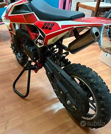 Dettagli tecnici: scarico Sportivo gas rapido con regolatore velocita Grandi pneumatici tassellati off-road 2 x freni a disco 2 chiavi Spegnimento motore sul manubrio frizione rinforzata carburatore modificato telaio pieno scarico racing Peso Box (s): 27.0 kg Peso del prodotto (e): 24.0 kg Dimensioni scatola (LxPxA): 105.0 X 28.0 x 55.0 cm Dimensioni del prodotto (LxWxH): 122,0 X 66,0 X 80,0 cm sospensione: forcella stelo rovesciato + sospensione rinforzata post. passo: 810 mm Capacità serbatoio carburante: 2 litri Carico utile max .: 75 kg Telaio: rinforzato replica Morini motore: 50 monocilindrico 2 tempi 4cv tuning cambio: automatico accensione: easy start trasmissione finale: catena Altezza sella: 60 cm carburante: Rapporto di miscelazione 1:25 pneumatici: anteriore e posteriore 2.5-10 2,5-10 freni: freni a disco anteriori e posteriori . Altezza dal suolo: 230 mm n.b. Come da foto perfetta! il prezzo comprende Casco e visiera, nel caso si voglia prendere solo la moto il prezzo verrà rivisto.