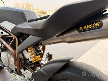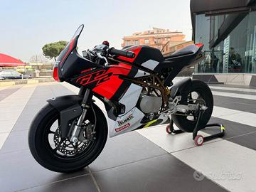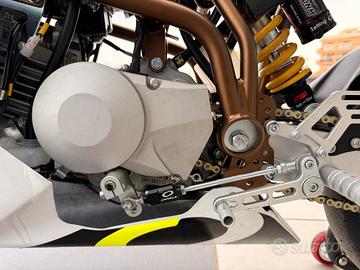 Versione Racing con pinza Brembo monoblocco, sospensioni completamente regolabili MUPO, cambio elettronico. La moto ha all'attivo pochissime ore di utilizzo. La Ohvale GP-2 PRO monta un motore Daytona 190cc monocilindrico a 4 tempi, raffreddato ad aria. Ha una distribuzione SOHC a 4 valvole e funziona con benzina senza piombo (min 95 ottani). L?alimentazione ? gestita da un carburatore Dell?Orto PHBH 28 BD con filtro racing. L?accensione ? elettronica, con bobina esterna e limitatore di giri (CDI). L?avviamento ? a kick starter con sistema di decompressione. Lo scarico ? in acciaio inox, con silenziatore Arrow in titanio, predisposto per DB Killer. Il cambio ? a 4 marce (N-1-2-3-4) con setting Ohvale. La frizione ? a bagno d?olio a 6 dischi, perfetta per una guida fluida. La trasmissione primaria ? a ingranaggi, mentre la secondaria utilizza una catena Regina serie oro con corona in ergal e rapporto 17/36 (2,117). Telaio, Sospensioni e Freni Il telaio ? un traliccio tubolare in acciaio altoresistente, saldato con tecnologia robotizzata.