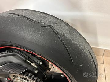 Ad inizio 2025, per non smontare le GOMME ORIGINALI dai CERCHI ORIGINALI (erano vecchie, pericolose e non volevo si rovinassero i cerchi), ho acquistato una coppia di cerchi NUOVI originali Panigale tricolore (con riga rossa) dischi freno NUOVI e tutti i componenti originali necessari. Gommati nuovi. Ad oggi han percorso meno di 100 km.
