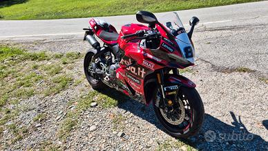 Vendo per inutilizzo, veicolo immatricolato a maggio 2025 con 3.500 km su strada tra rodaggio e giri domenicali. Carenatura con wrapping completo asportabile replica della livrea del team SBK ARUBA RACING. Tagliandi ufficiali certificati. Moto ricoverata sempre in garage e su cavalletto. Incluso mantenitore di carica Ducati e cavalletto posteriore.