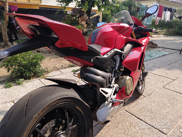 Vendo a malincuore per immediato realizzo panigale v4s del 2020 con quasi 26000km.Usata una volta in pista al Mugello (best 2.17) per il resto sempre casa/lavoro. Puntualmente tagliandata presso ducati Venezia con tutti gli aggiornamenti richiesti già eseguiti. Monta ali e convogliatori aria pinze in carbonio, protezione forcellone ducati performance e griglia protezione radiatore. Dispongo delle ali originali e kit biposto usato una giornata e rimesso in scatola. Pastiglie e gomme(rosso corsa 4) al 50%.