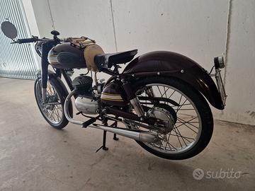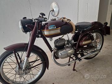 Splendida PARILLA del 1952 modello 125 2 tempi versione LUSSO. Totalmente restaurata iscritta FMI e con targa oro ufficiale della federazione. Il modello lusso differisce dalle altre per i vari accessori e dettagli in più rispetto alle versioni normali. La moto al momento ha meno di 600km ed è in rodaggio. Con essa viene fornito anche un secondo manubrio meno sportivo e leggermente più alto. il motore è tutto nuovo ed è elaborato, ogni guarnizione e cuscinetto è nuovo, così come pistone e biella. Monta un'accensione elettronica specifica che non richiede più la batteria, volano alleggerito e frizione nuova con molla rinforzata, carter motore raccordati e lucidati e travasi cilindro maggiorati. Anche il cilindro stesso è stato elaborato in aspirazione e scarico ed alesato a 130cc. Carburatore originale ma adeguato e tarato sui lavori fatti. Targa originale (TV) e documenti originali in regola. Molti dettagli difficili da trovare, la pompa al telaio ( più una seconda originale) l'attacco candela a vista in bachelite, una riproduzione fedele del bollo sul manubrio, sella originale introvabile (sospesa su molla regolabile) ecc.. Restauro finito nel 2022 ma mai usata causa altre moto, solo accesa saltuariamente per 10 minuti di giro attorno alla casa