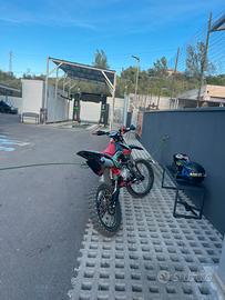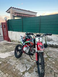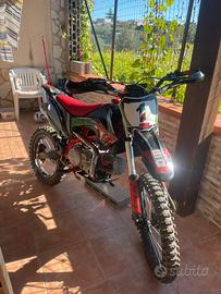 Vendo pbs hyper 150 con blocco zs 190 con 40 ore all'attivo, la moto monta 940? di strumentazione bmw motorrad navi 6, cerchi piu grossi 19/16 gommati pirelli, forcella anteriore rivista dal mio preparatore, mono ammortizzatore kayo 190r, carburatore keihin 32 pwk, catena corona e pignone nuovi con catena in colorazione gold, pinza anteriore e posteriore cambiate messe quelle racing con pastiglie sempre racing, leve antirottura di marca, sella rifoderata anti acqua, impianto elettrico totalmente cambiato per enduro visto che il blocco esce per pista stradale, testata preparata con valvole in titanio, piattelli mbf e fasatura di scarico rivista con filtro dell'olio maggiorato della crf 250. Prezzo poco trattabile