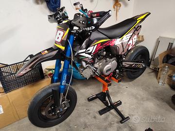 Vendo pit bike PBS rivale, acquistata nuova a maggio 2023 direttamente in sede ad Asti. MAI fatto gare, solo uscite nel weekend con amici. Controllo gioco valvole ad ogni uscita e sostituzione olio ogni 2 uscite. Attualmente ha 18 ore, appena effettuato tagliando con sostituzione olio motore, olio freni e controllo gioco valvole. Configurazione: MOTORE - Motore YX 160cc - Piattelli Ayrton+ originali disponibili - Carburatore Keihin 28mm taiwan - Radiatore dell'olio lamellare - scarico completo LM -ingranaggi pedivella rimossi, saranno ceduti alla vendita TELAIO e CICLISTICA - Telaio ultimo modello, made in Italy (dm telai) semiperimetrale con piastre in ergal cnc con pivot regolabile - Telaietto reggisella in alluminio regolabile - Forcellone posteriore in alluminio - Manubrio 28mm in alluminio piega bassa - Comando gas rapido e manopole DOMINO - Paramani Acerbis - Impianto freno anteriore completo Adelin a 4 pistoncini - Disco freno anteriore flottante da 220mm - Impianto freno posteriore a doppio pistoncino Adelin - Disco freno posteriore da 190mm - Nuove carene CRF 110 Style con grafiche Rivale - Pedane GP rialzate e regolabili - Vaschetta recupero fluidi - Catena EK passo 420 - Freno posteriore a pollice zaffoni special con pompa Brembo SOSPENSIONI - Forcella GUBELLINI FF01 a cartuccia aperta pluriregolabile - Monoammortizzatore DNM MT-RC pluriregolabile Possibilità di consegna nel raggio di 50 km Insieme alla pit bike consegnerò alcun ricambi nuovi come bobine, centraline etc. Possibilità di vendita coppia termocoperte Per ulteriori info, contattatemi.
